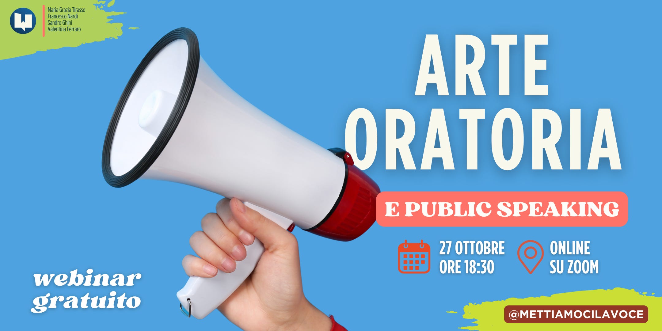 Un’ora e mezza di lavoro teorico e pratico su arte oratoria e public speaking, per scoprire questa disciplina meravigliosa e come può migliorare la nostra comunicazione.