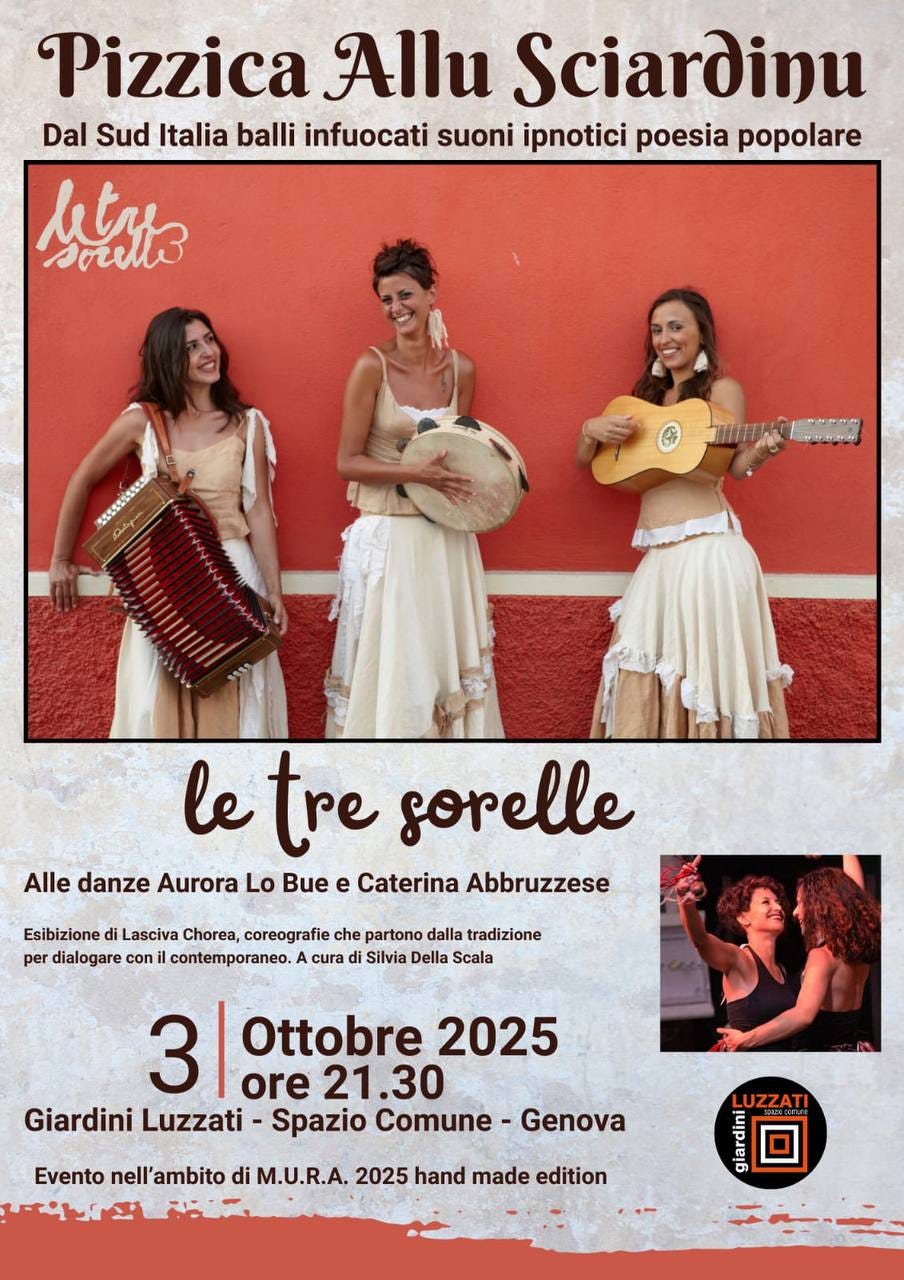 Segnaliamo agli amicy genovesi che venerdì 3 ottobre alle 21:30 ai Giardini Luzzati, ci saranno 3 cantanti meravigliose pronte a portarvi nel magico mondo della corporeità della voce